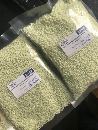 YADA Luminescent Masterbatch Type Model: MB-50A used for ABS,AS ,PS,PMMA series MB-50B used for PE,PP,PVC series MB-50C used for PA, PET polyest cut Glow color: yellow-green (other color blue-green blue red etc needed custmzied)