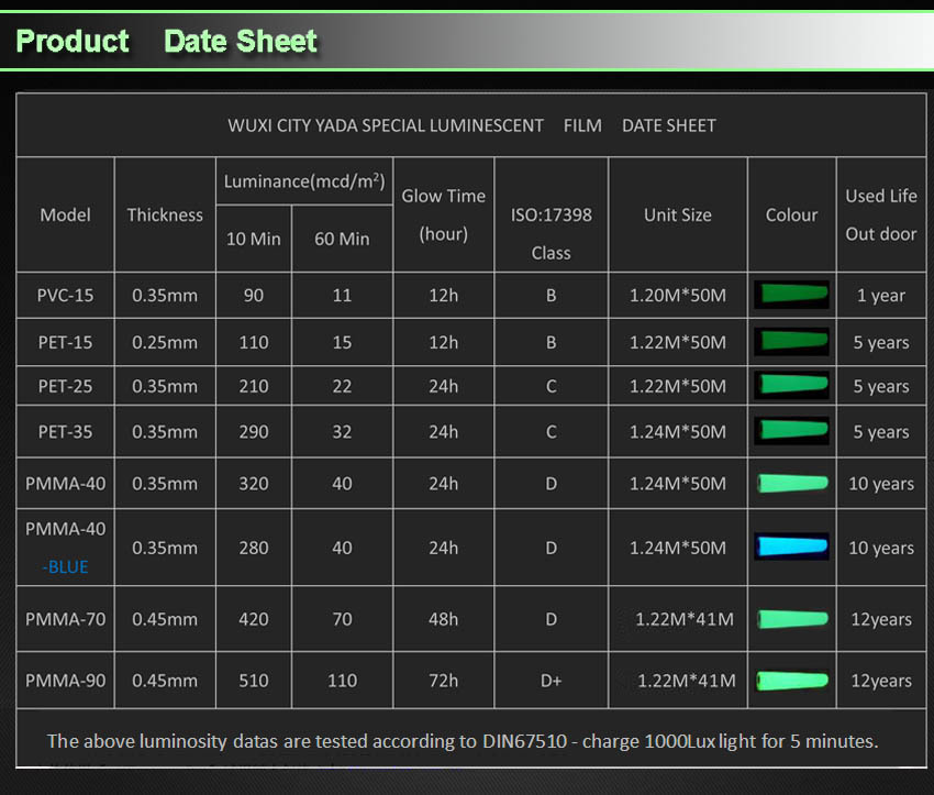 1).YADA LUMINESCENT ® Photoluminescent Film(Photoluminescent Tape)
